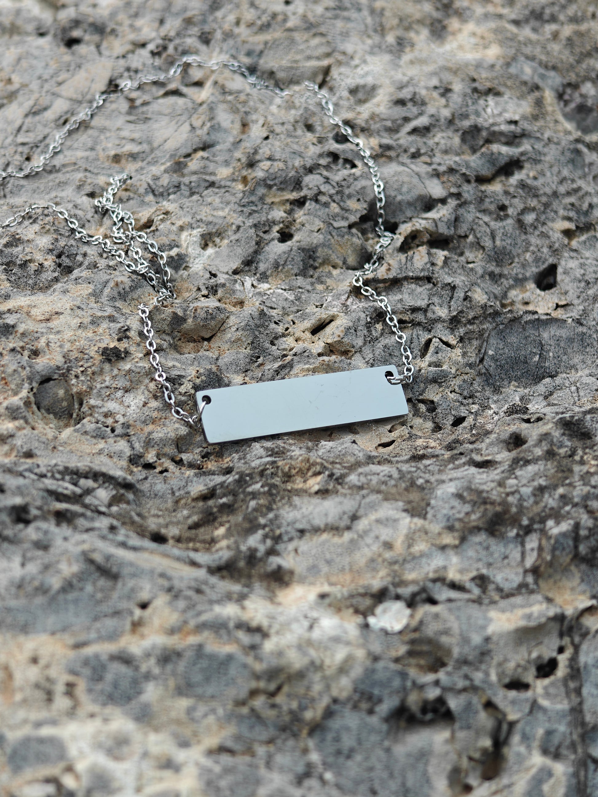 Questa elegante collana con pendente a barra orizzontale è il regalo ideale per celebrare un momento unico.