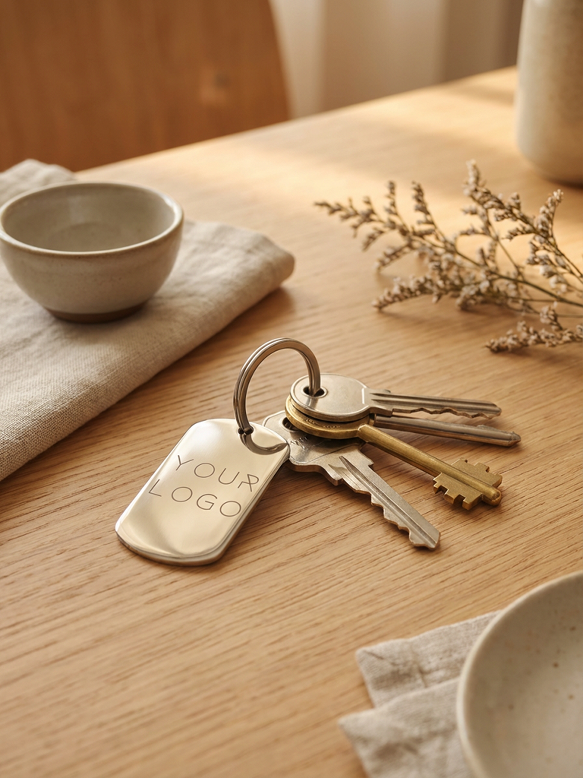 Realizzato in acciaio inossidabile, questo portachiavi combina durata e stile con un’incisione chiara su entrambi i lati.