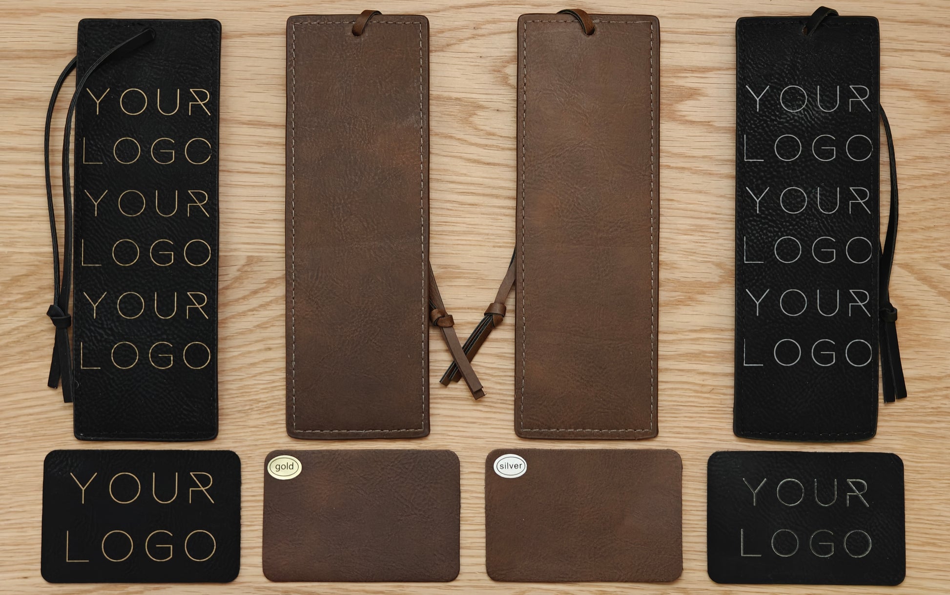 Questi segnalibri in ecopelle marrone o nera possono essere personalizzati con incisioni in finiture oro o argento, aggiungendo un tocco unico ai tuoi momenti di lettura.